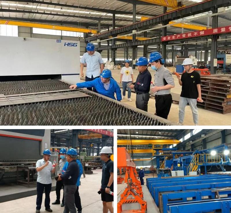在参观调研车间过程中,岳能武向循环经济研究会领导介绍了进口高精度三维切割设备(Microstep迈誓坦)及HSG激光切割机。之后,为循环经济研究会团队还介绍了我司拥有的先进仓储物流系统,钢板的多品规、物流“吞吐量”,可满足客户各种需求。